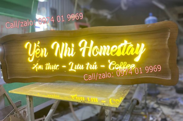 biển gỗ phát sáng nhà hàng homestay